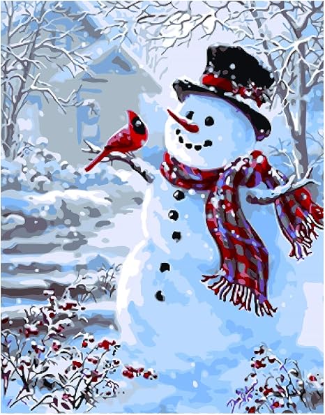 Antiniska DIY Peinture par numéros pour adultes et enfants DIY Peinture par numéros, peinture acrylique de Noël par numéros, kit de peinture de Noël Bonhomme de neige pour chambre à coucher, salon